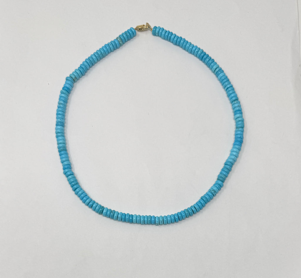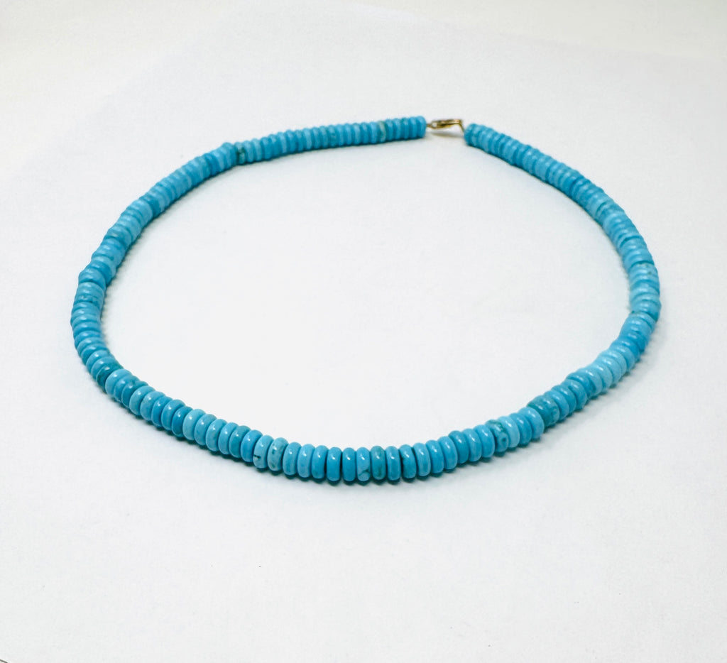 Turquoise Colored Stones: 8mm beads in varying bluish-green tones offer ombré depth and earthy beauty