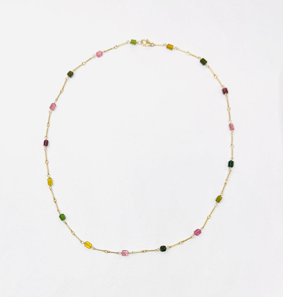 ~ Multi-colored tourmaline stones (including various shades of green, pink, and blue)